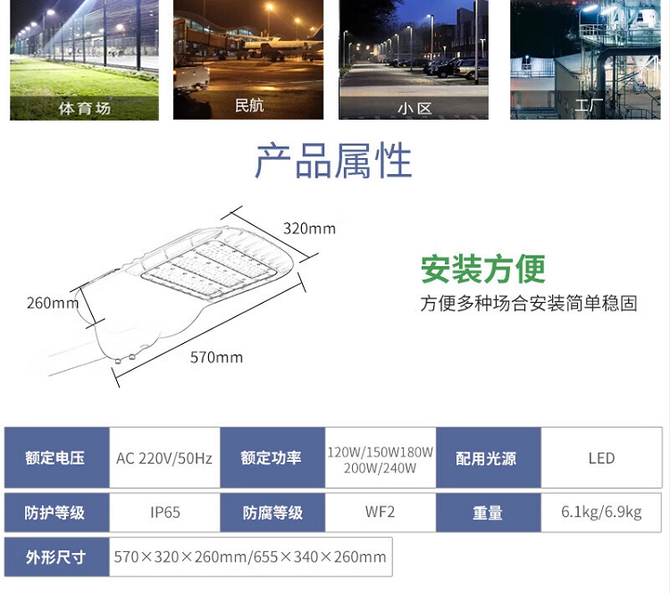 商品名称:【精选】明特佳(Mintega) NZLD9700A-L180 180W LED道路灯 灰色(套)