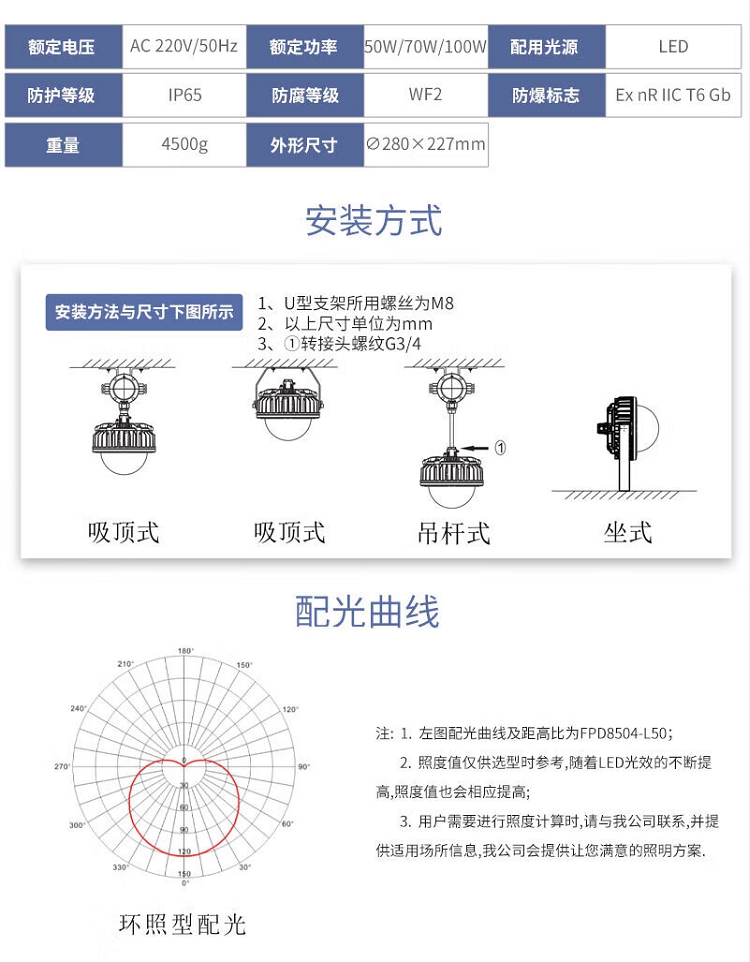 商品名称:【精选】明特佳(Mintega) NFPD8504-L60 60W LED防爆平台灯 黄色(套)