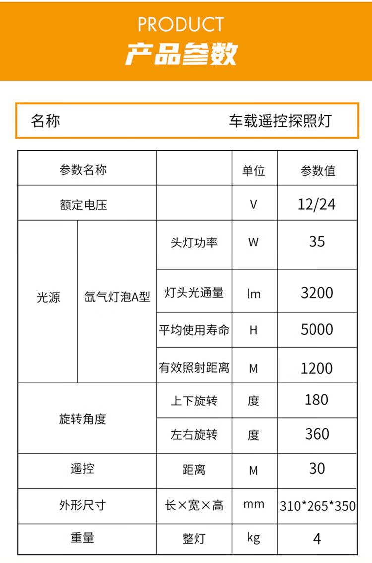 商品名称:【精选】明特佳(Mintega) NCZD3200 21W LED车载遥控探照灯 黑色(套)
