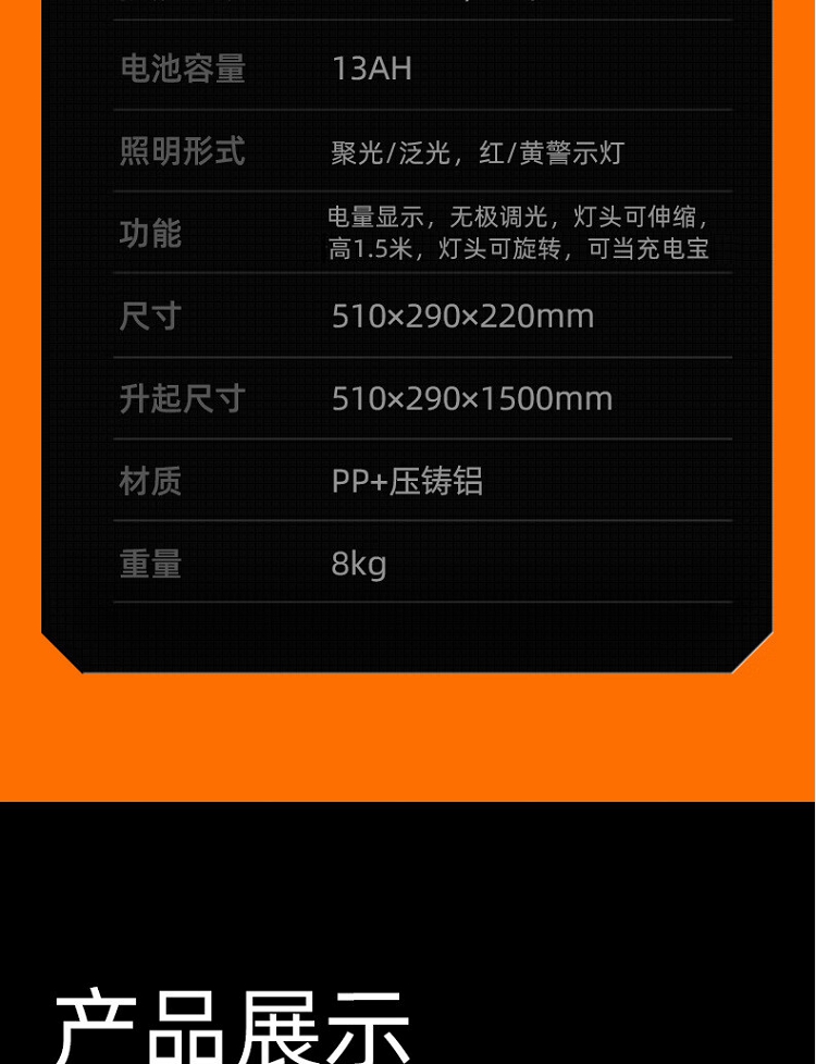 商品名称:【精选】明特佳 MTJ-FW6116 轻便式工作灯 35W IP66 单位: