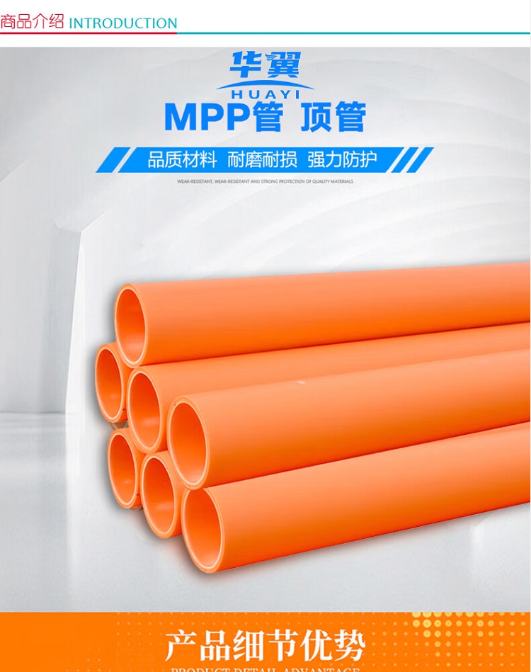 商品名称:【精选】华翼 GJC-HY30418 MPP管 顶管 200*12mm (红色) 计价单位:米