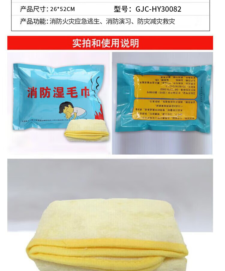 商品名称:【精选】华翼 GJC-HY30082 火灾逃生湿毛巾 高配版
