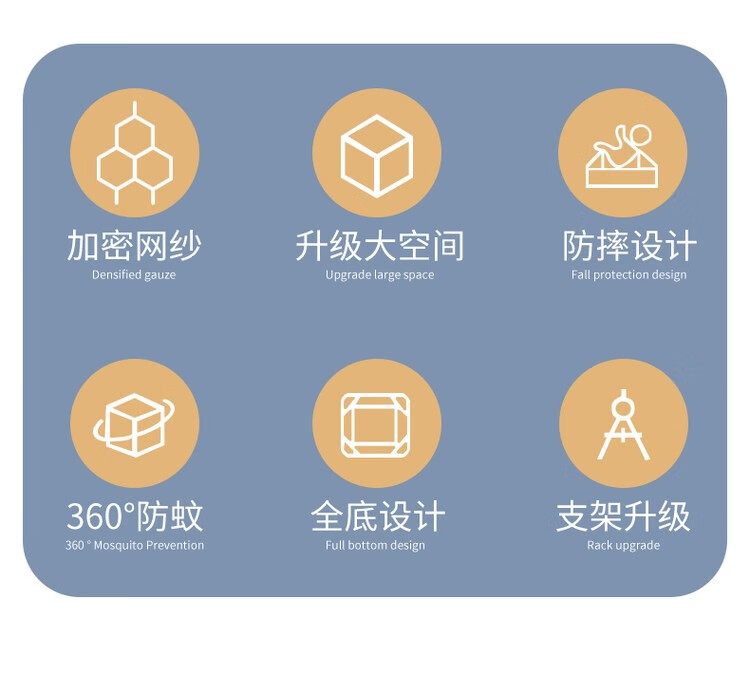 商品名称:【精选】自然巢全封闭坐床式蚊帐加密网纱多开门拉链防摔蚊帐 铁艺烤漆支架坐床蚊帐 180*200 cm