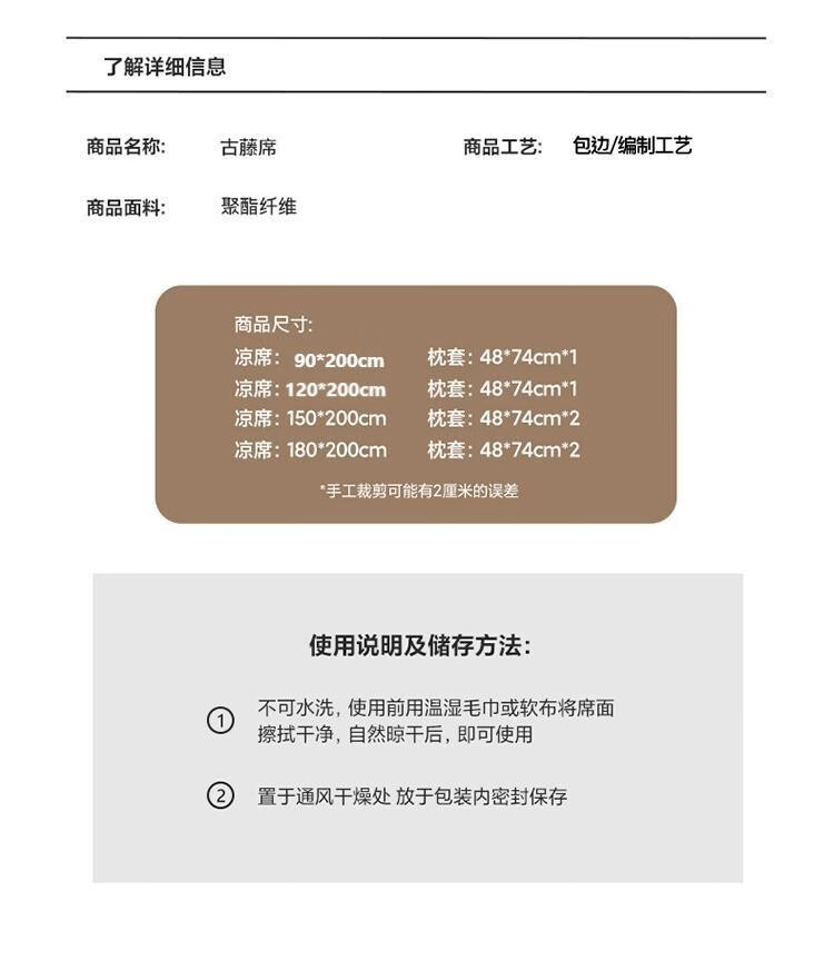 商品名称:【精选】自然巢凉席夏季席子单人双人空调席可折叠抗菌席 凉感抗菌冰丝凉席三件套 180*200 cm