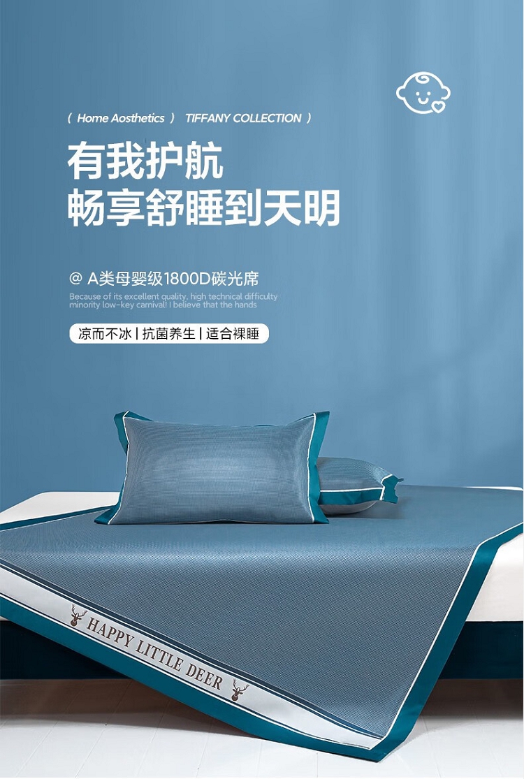 商品名称:【精选】自然巢凉席夏季席子单人双人空调席可折叠抗菌席 碳光冰丝席三件套 150*200 cm