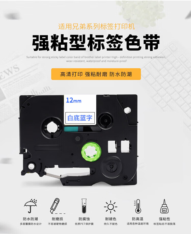 商品名称:【精选】帕思米 PSM-233适用兄弟标签机色带标签纸 规格12mm*8m白底蓝字