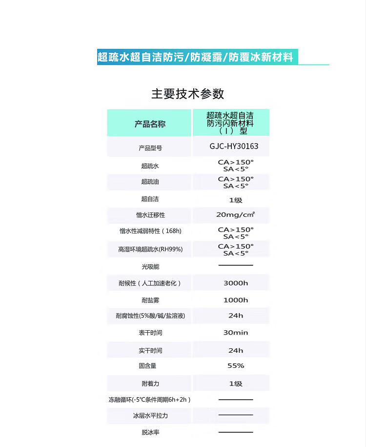商品名称:【精选】华翼 GJC-HY30163 超疏水超自洁防污闪新材料 (Ⅰ) 型 固含量55%