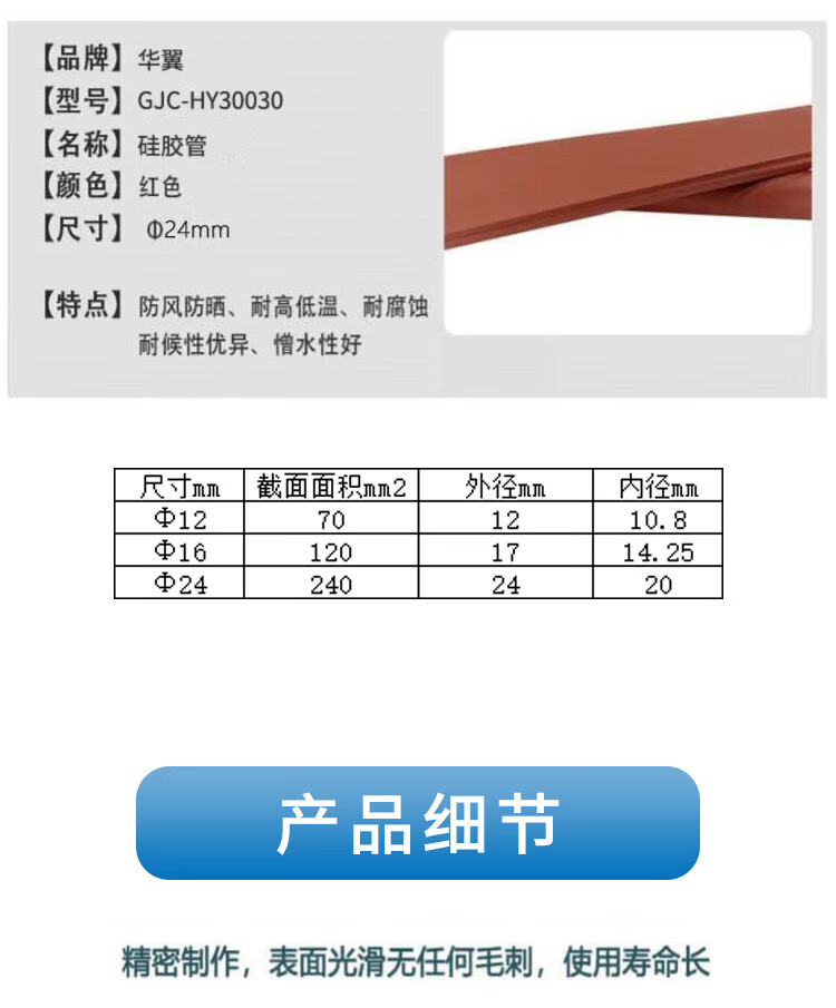 商品名称:【精选】华翼 GJC-HY30030 硅胶管 Φ24 红色(单位:米)