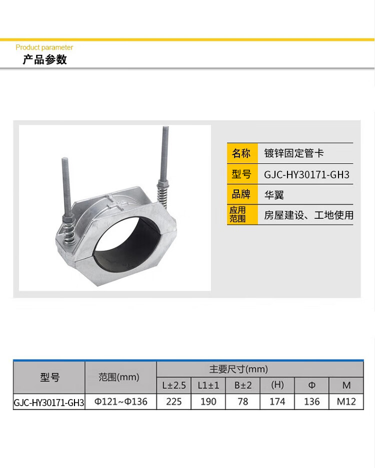 商品名称:【精选】华翼 GJC-HY30171-GH3 镀锌管卡 单位:个