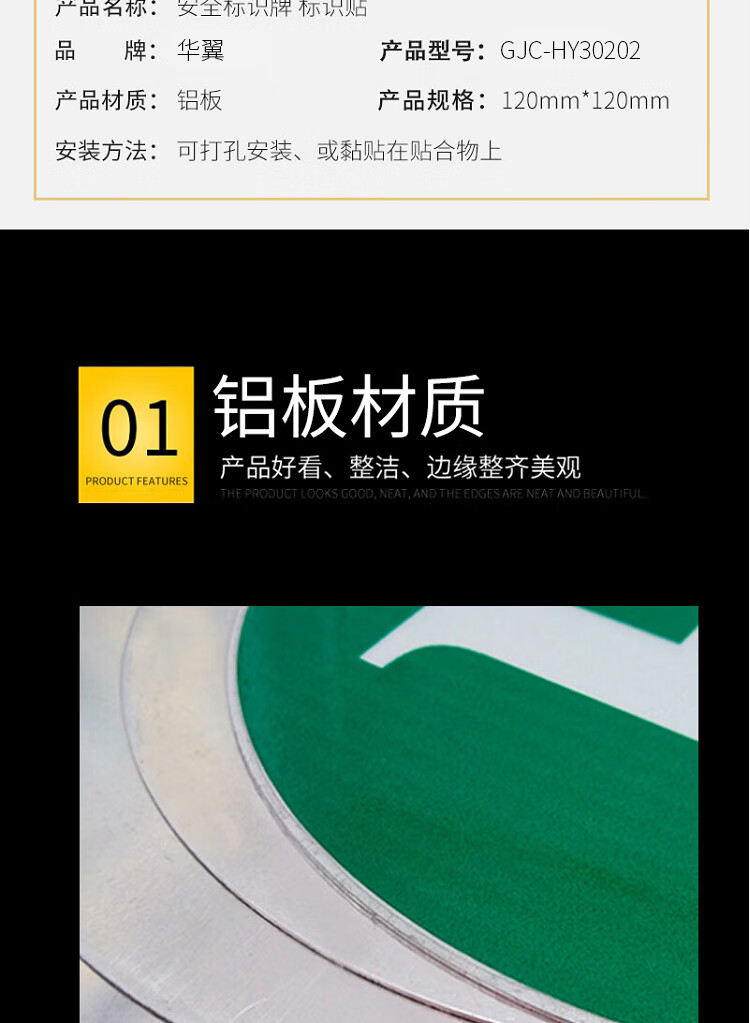 商品名称:【精选】华翼 GJC-HY30202-1 安全标识牌 标识贴 120mm*120mm (单位:块)