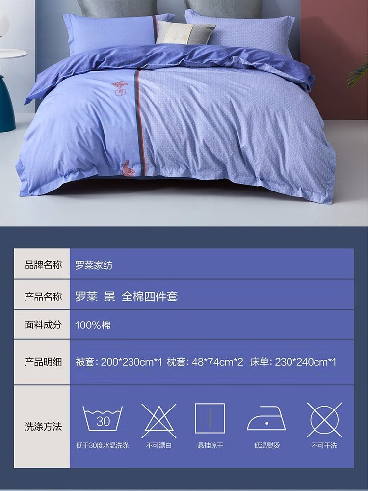 商品名称:【精选】罗莱 TGTY0002-4 黛烟雨眠提花四件套