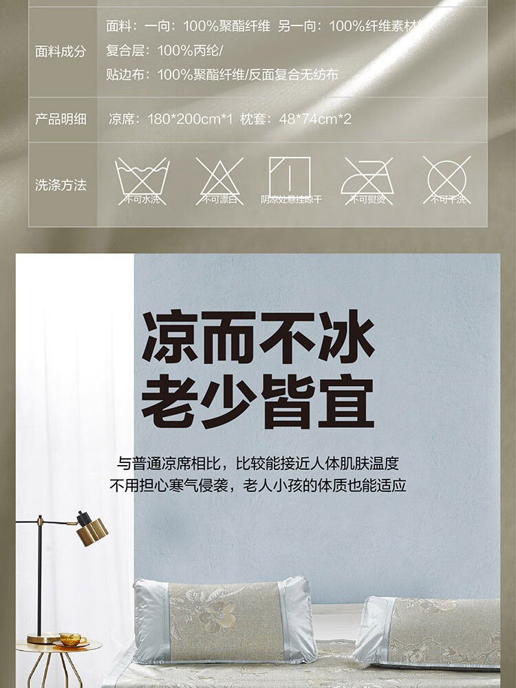 商品名称:【精选】罗莱 光影幻梦冰丝席三件套