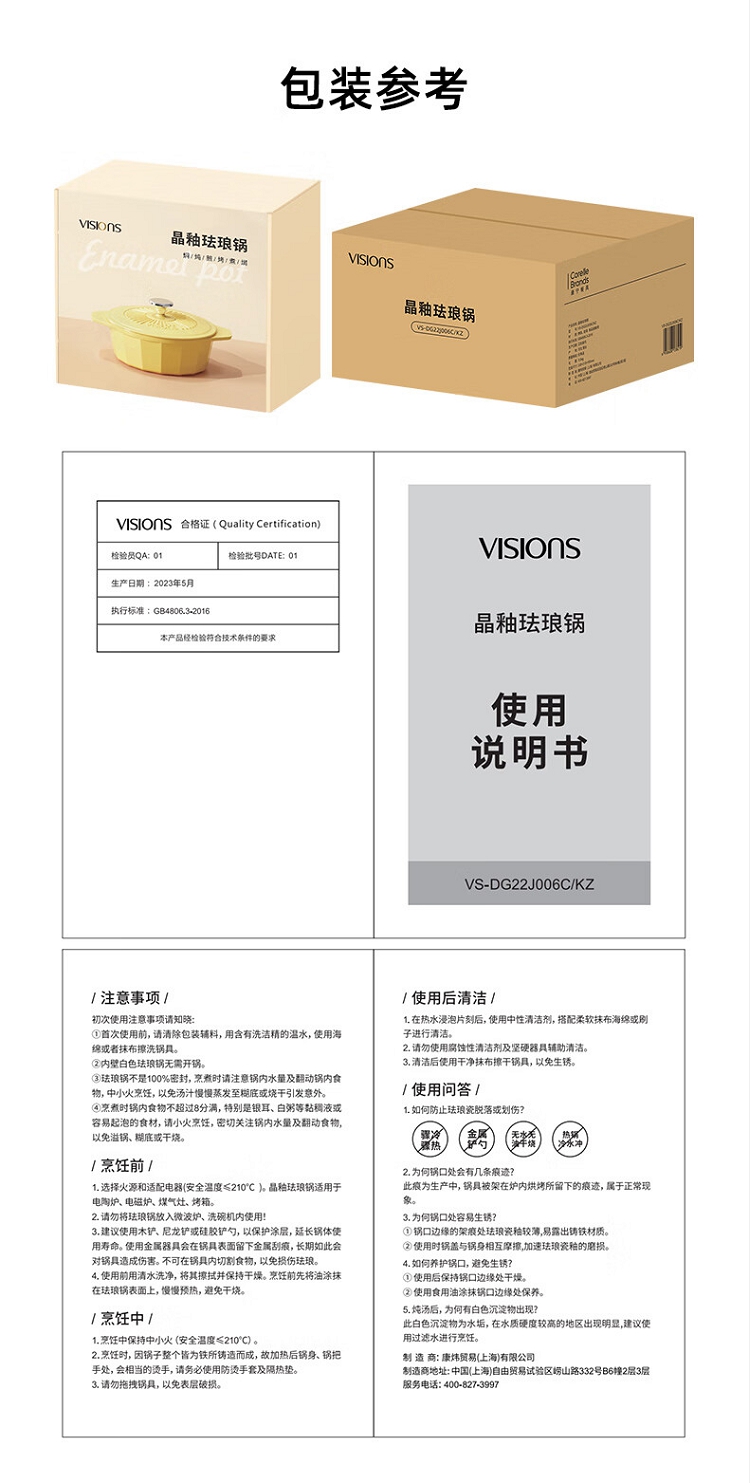 商品名称:【精选】康宁(VISIONS)VISIONS晶釉珐琅锅(含赠品-硅胶三件套)