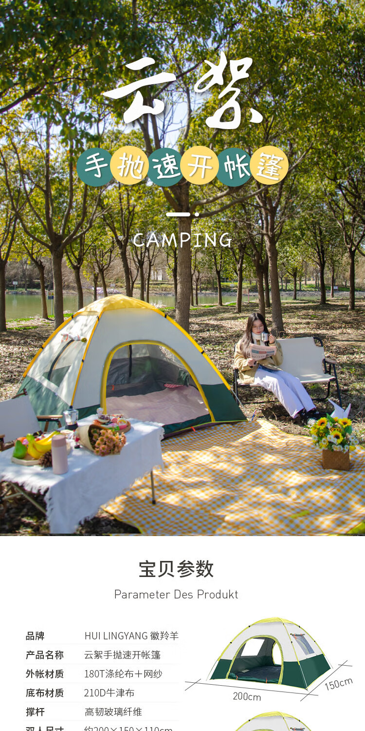 商品名称:【精选】徽羚羊 云雾全自动露营防雨4-5人帐篷(2.2*2.2m)
