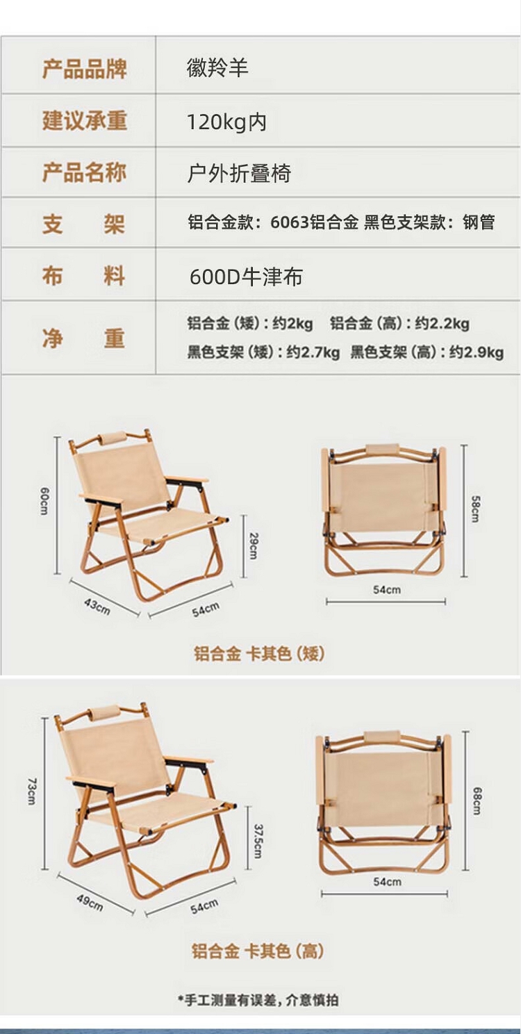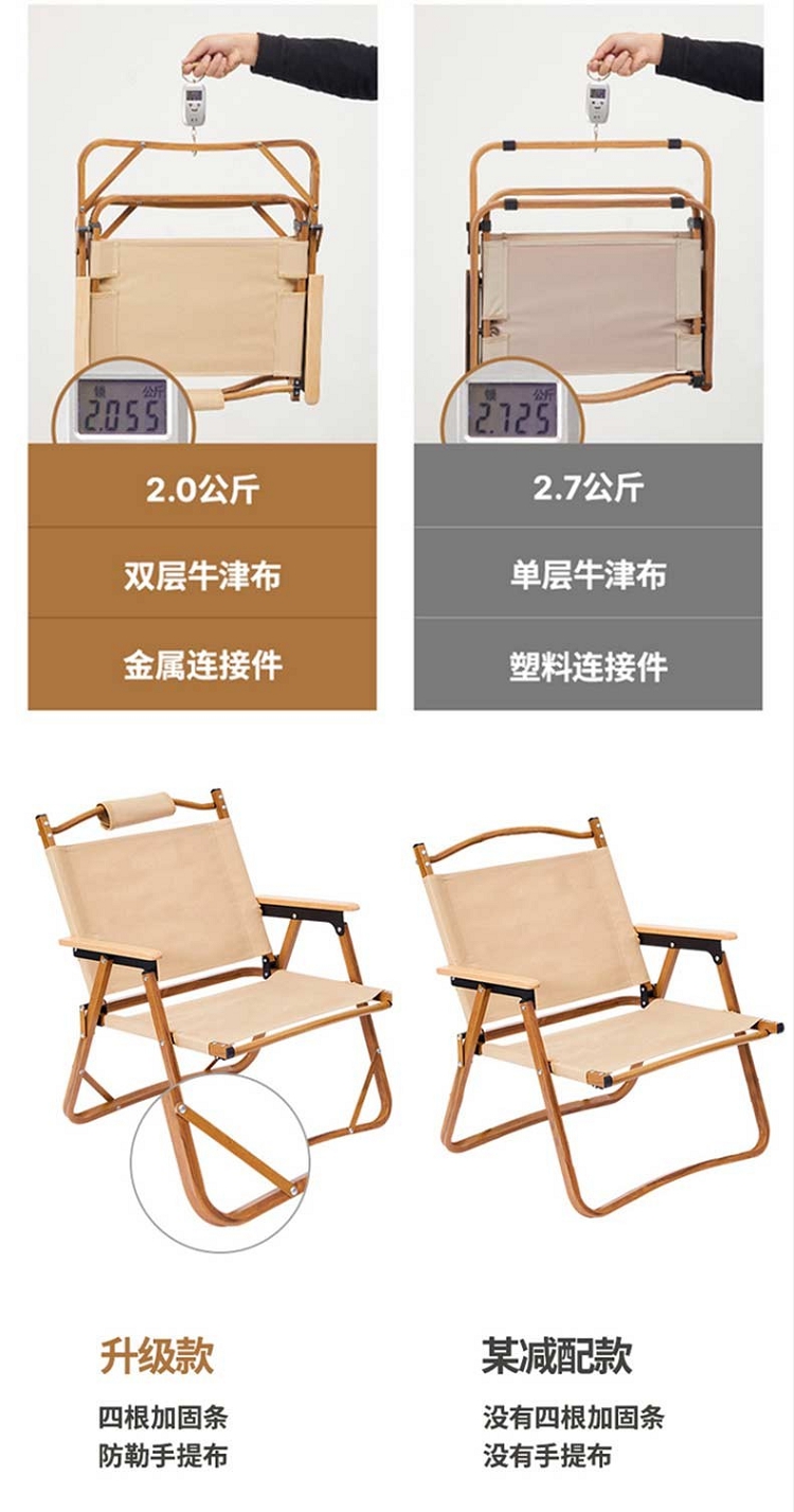 商品名称:【精选】徽羚羊 木纹克米特 精致露营折叠便携露营椅 单人大号 (钢材椅架)米白色