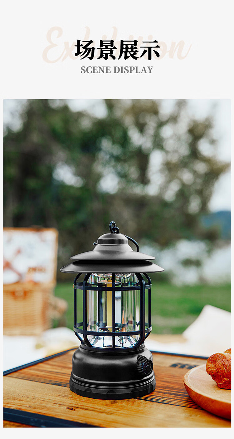 商品名称:【精选】徽羚羊 复古野营灯 充电款 (黑色)