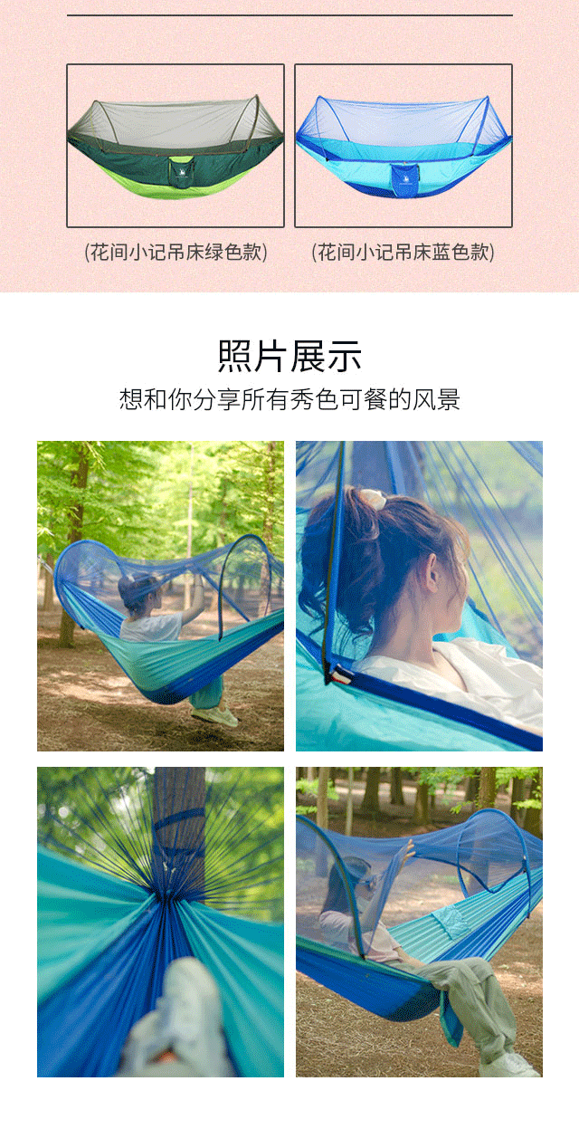 商品名称:【精选】徽羚羊 花间小记 户外出游露营旅游便携防翻透气加厚帆布吊椅 带棍米白色吊床 双人 200*150