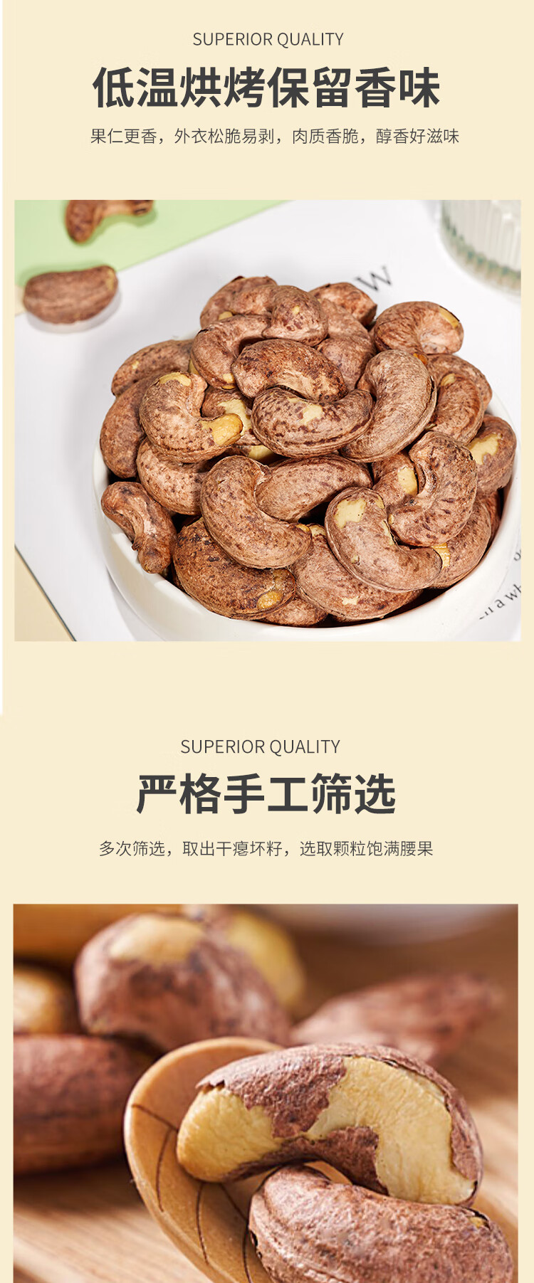 商品名称:【精选】由小汐 零食装紫衣腰果108g*2袋