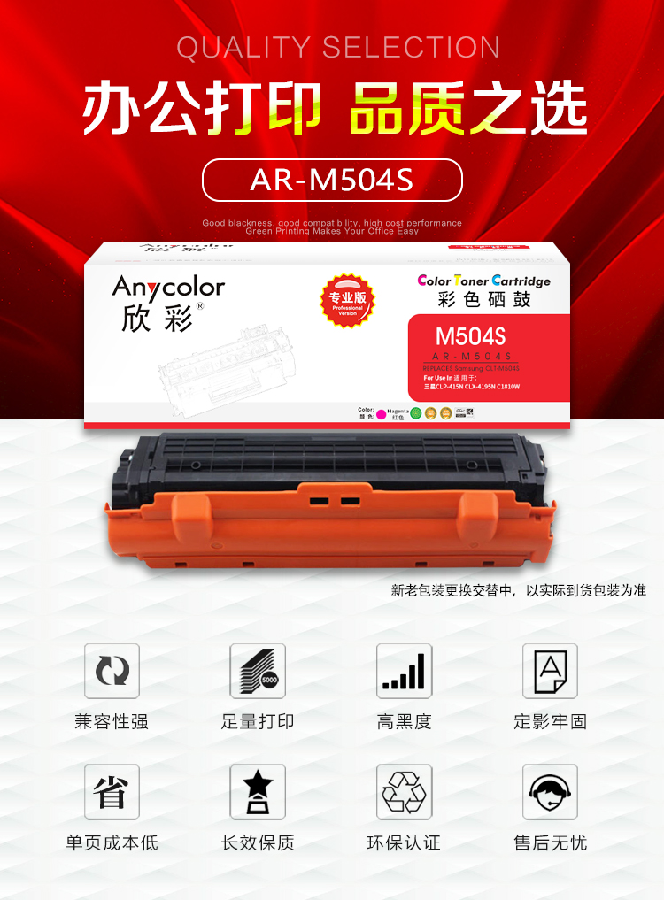 商品名称:【精选】欣彩 CLT-M504S硒鼓 专业版 AR-M504S红色 适用三星 CLP-415N CLX-4195N 4195FN彩色打印机