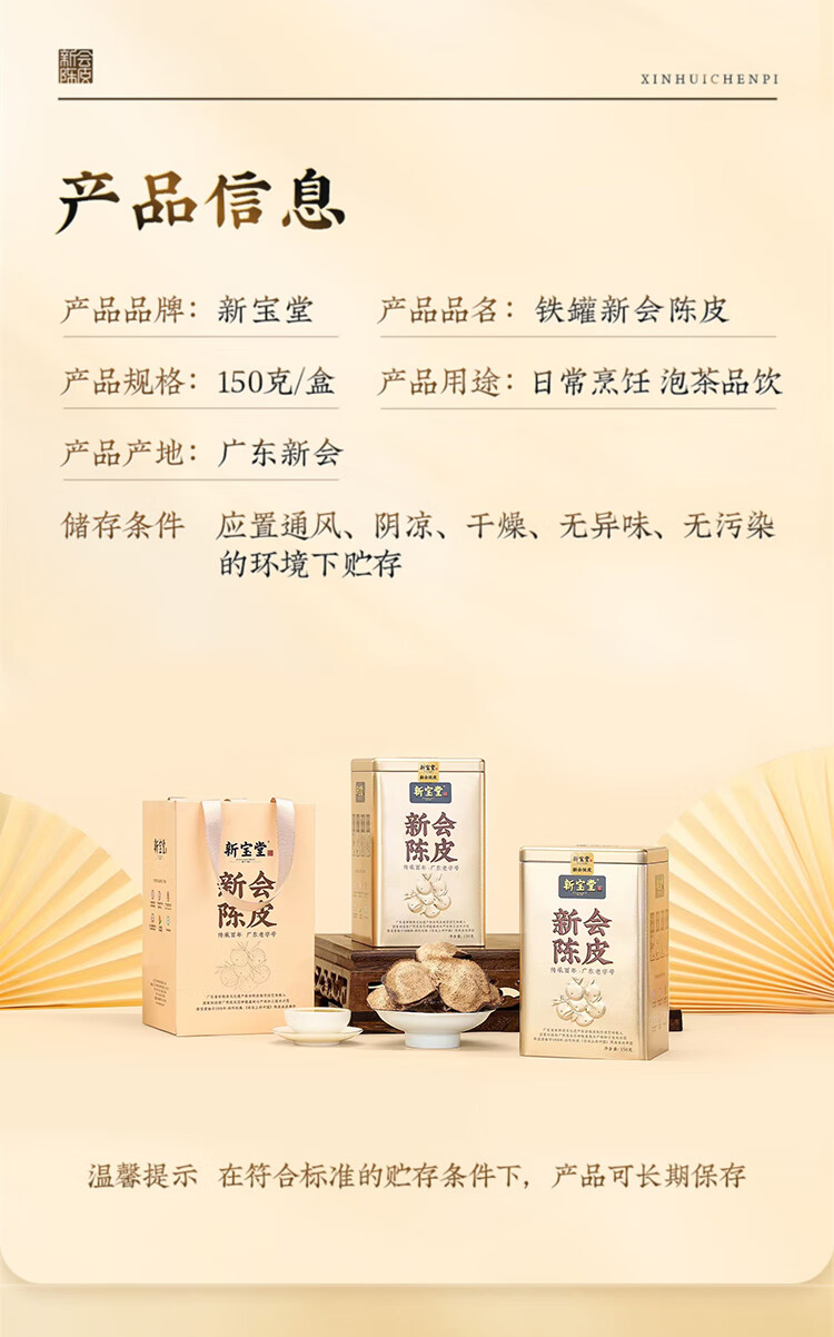 商品名称:【精选】新宝堂10年陈皮金罐礼盒150g