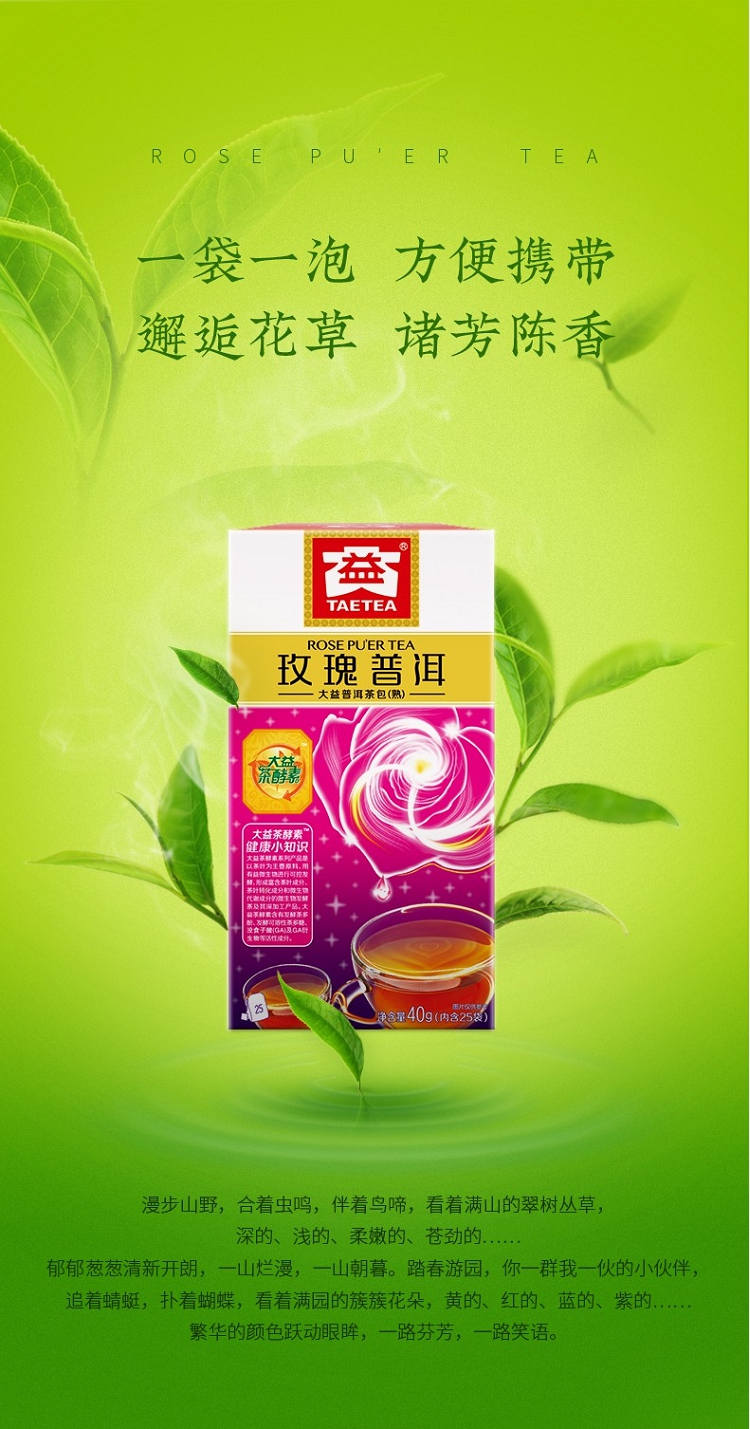 商品名称:【精选】大益玫瑰普洱熟茶(袋泡茶)(17)1.6g/泡*25泡/盒
