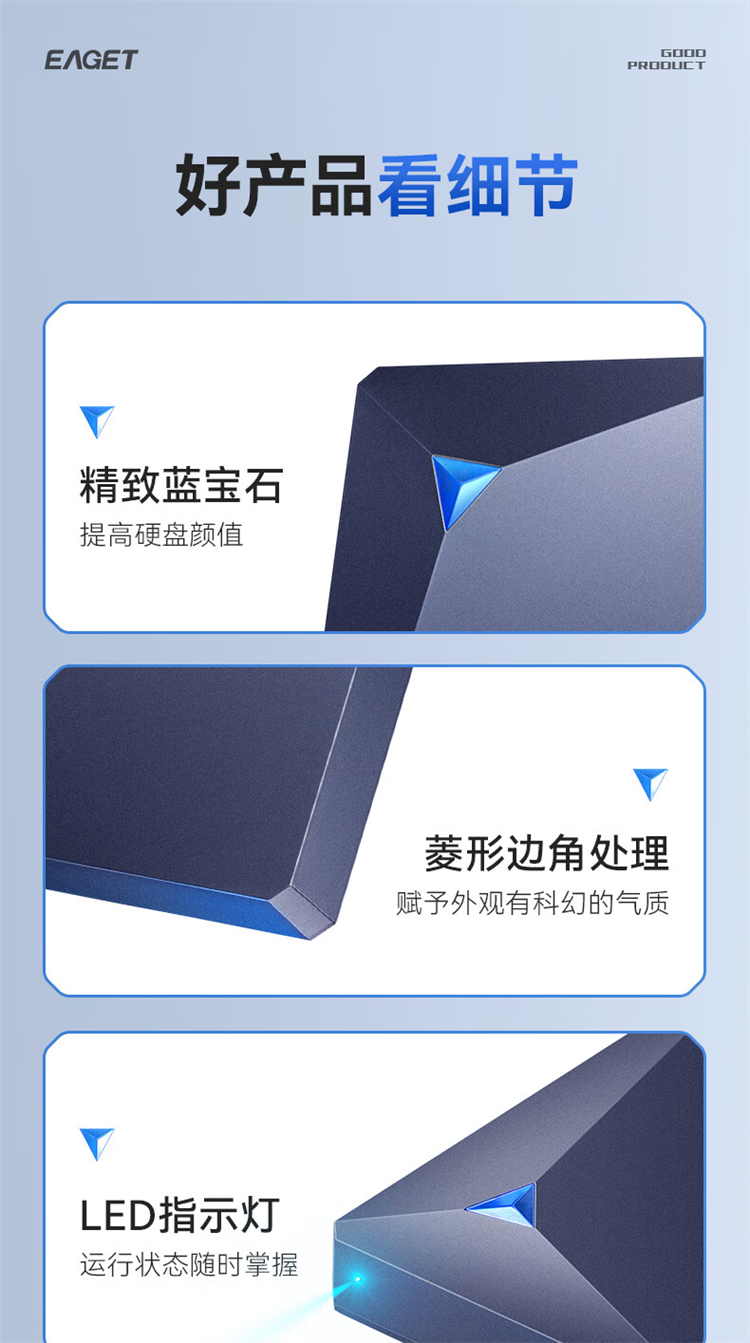 商品名称:【精选】忆捷(EAGET)移动硬盘G100 USB3.0接口2.5英寸移动机械硬盘写入100M/S以上 时尚款 500GB