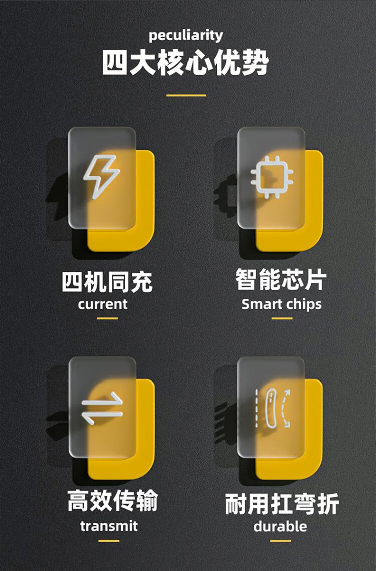 商品名称:【精选】忆捷(EAGET)EC009 一拖四快充数据线适用苹果15 Type-C华为安卓手机蓝色