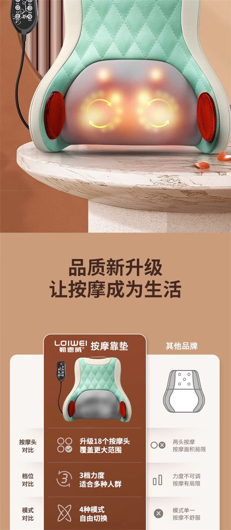 商品名称:【精选】勒德威 AZ-012蓝色揉锤同步按摩靠垫(手控款)