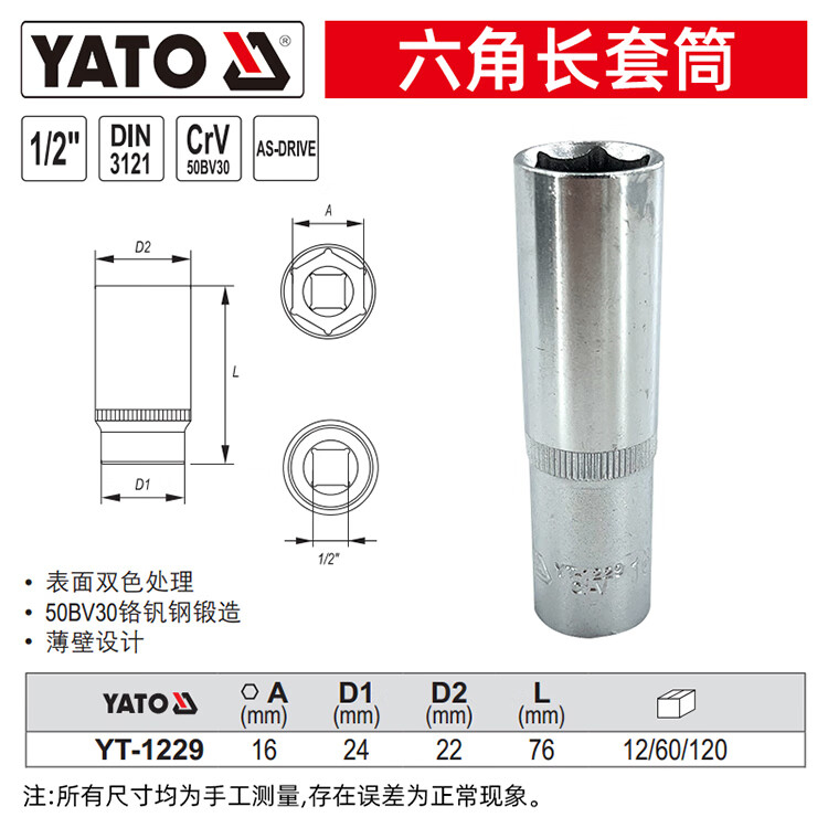 商品名称:【精选】易尔拓 1/2"六角长套筒16MMYT-1229