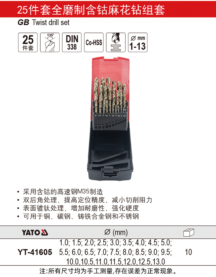 商品名称:【精选】易尔拓 全磨制含钴麻花钻4.0x75MMYT-4040