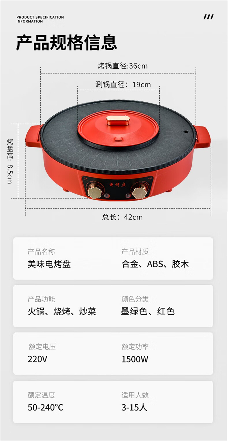 商品名称:【精选】翰乐 YP-K8008美味电烤盘36cm-绿色