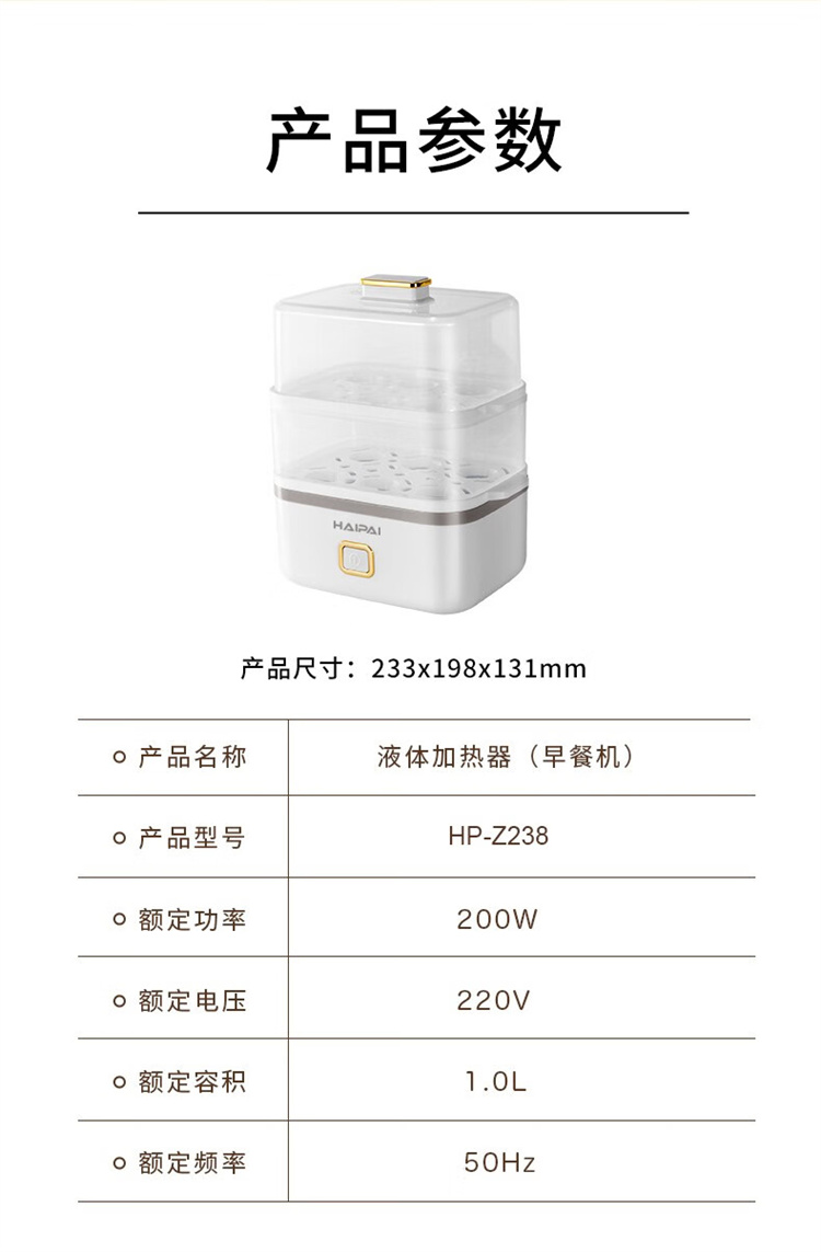 商品名称:【精选】海牌 多功能早餐机HP-Z238【白色】
