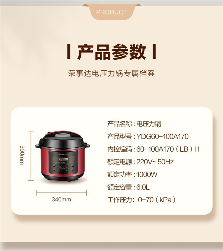 商品名称:【精选】荣事达 电压力锅 60-100A170(LB)H
