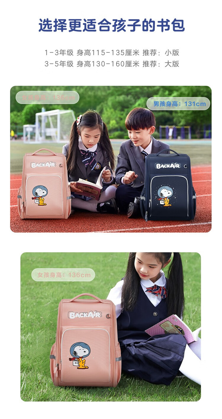 商品名称:【精选】爱华仕(OIWAS)强效减负 史努比漫画联名款书包 小学生儿童书包 抑菌防泼水OCB4441CAS:颜色分类:浅粉色