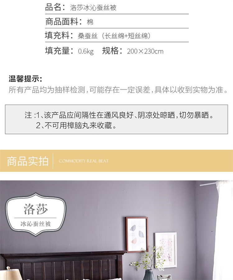 商品名称:【精选】恒源祥TSB1039洛莎冰沁蚕丝被 200*230cm 单位:条