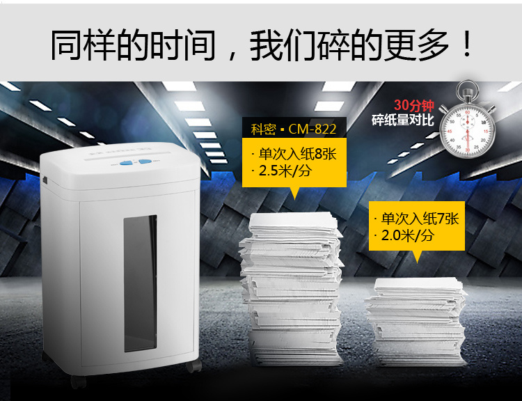 商品名称:【精选】科密碎纸机CM-822 多功能存储介质销毁机 可碎纸、IC卡、芯片 国保测认证保密等级二级 22L