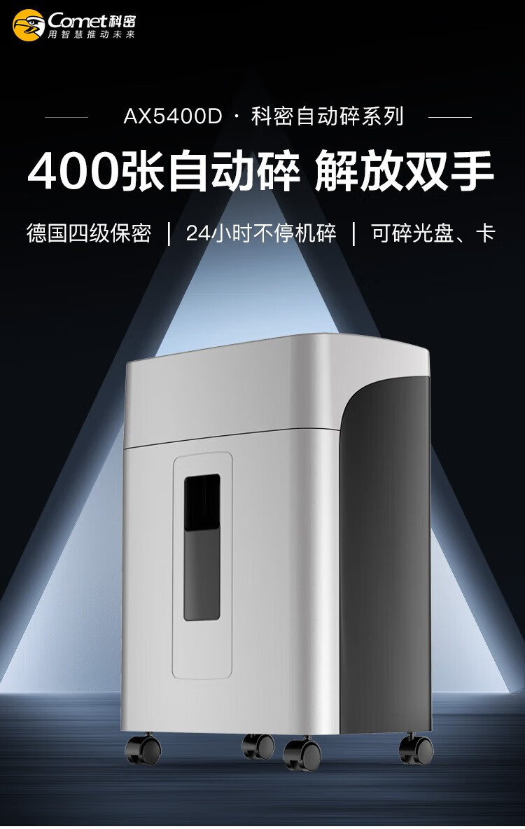 商品名称:【精选】科密 AX5400D全自动碎纸机 办公商用(全自动400张手动15张 24小时不停机 可碎卡、光盘)