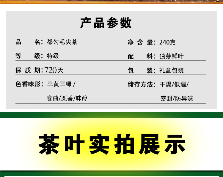 商品名称:【精选】万季香 都匀绿茶毛尖新茶特级2条装贵州茶叶高山云雾春茶谷雨茶240G