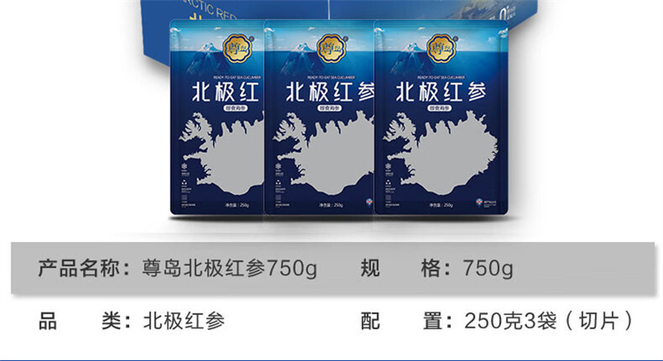 商品名称:【精选】中卡 尊岛北极红参500g