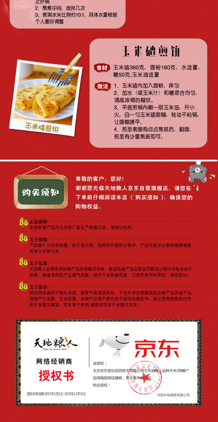 商品名称:【精选】天地粮人 天地粮人 东北玉米碴 礼袋装(350g*5包 )