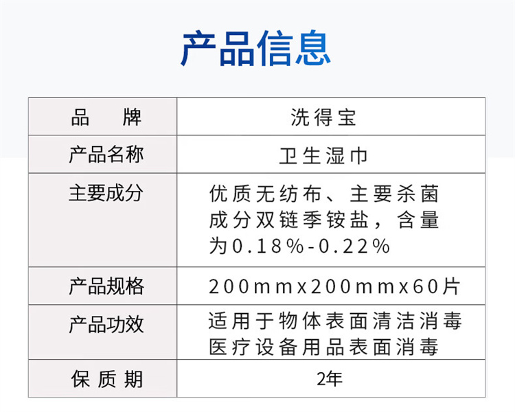 商品名称:【精选】洗得宝 季铵盐卫生湿巾 60片/包 物体表面杀菌消毒