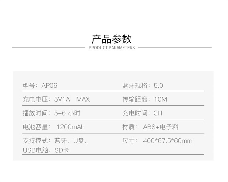 商品名称:【精选】沃品蓝牙数码音箱AP06