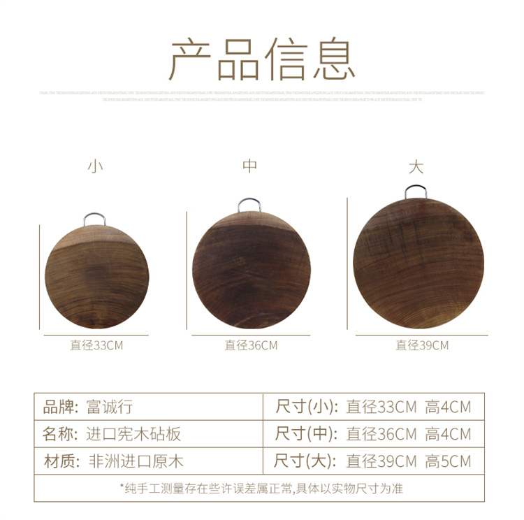 商品名称:【精选】富诚行 原木色宪木原木菜板 中号 直径36cm