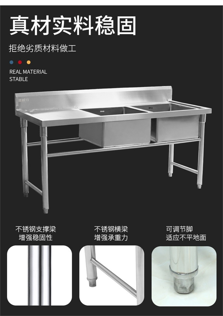 商品名称:【精选】富诚行 工程商用款201不锈钢拆装式双星盆池带操作台 1550*550*950mm