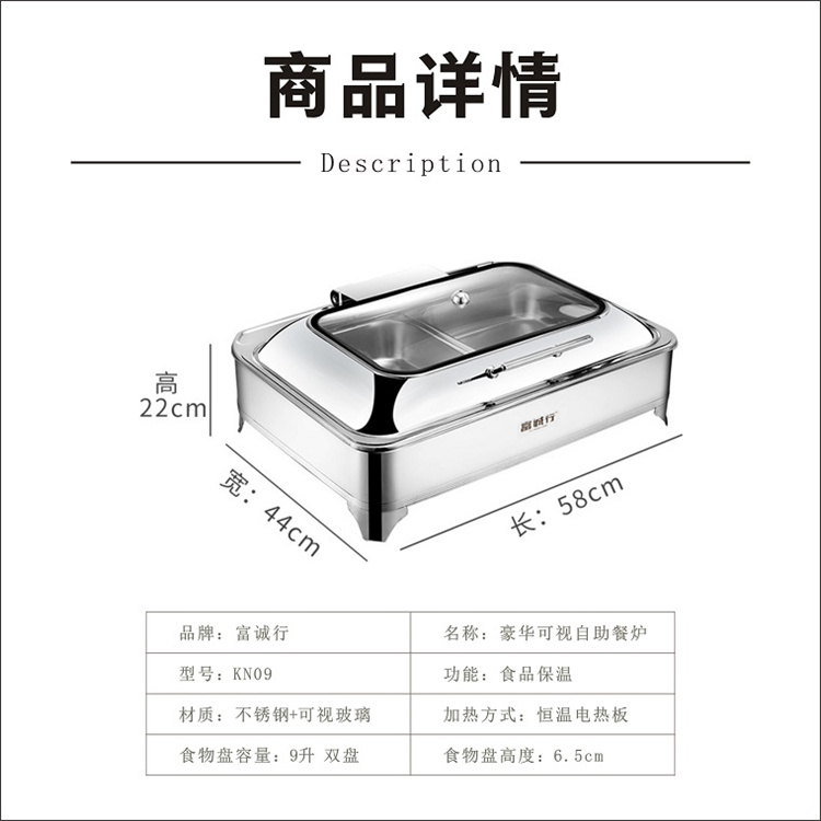 商品名称:【精选】富诚行 豪华可视自助餐炉电热布菲炉 1/2份数盘配 13L (2个/套)