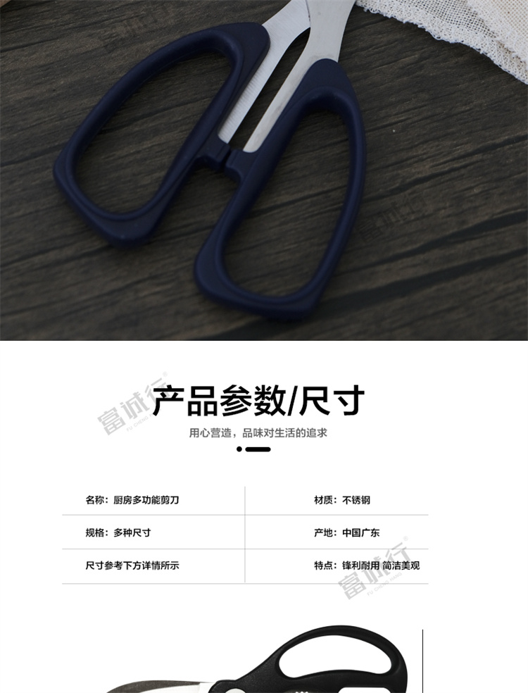 商品名称:【精选】富诚行 黑色多功能剪刀 家用不锈钢强力剪刀