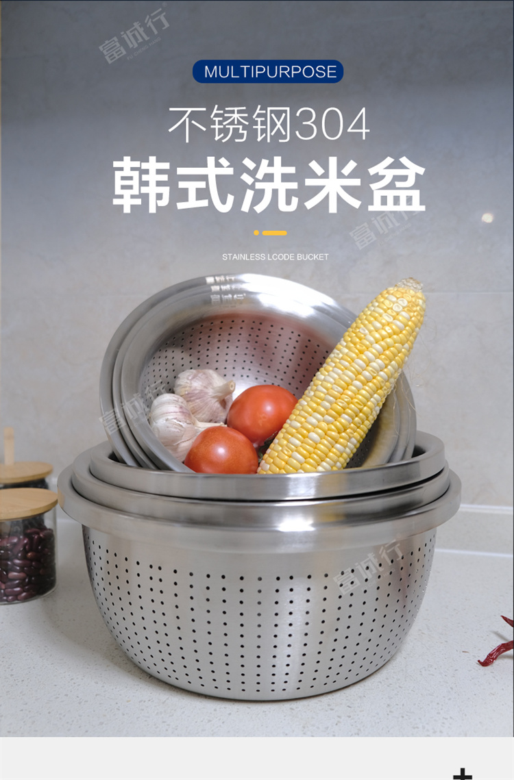 商品名称:【精选】富诚行 304不锈钢家用厨房沥水盆 洗米洗菜盆 淘米盆 22cm