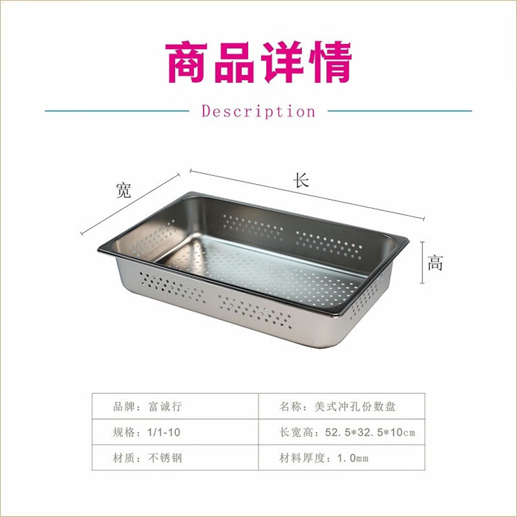商品名称:【精选】富诚行 不锈钢美式冲孔份数盘 1/1-高10cm