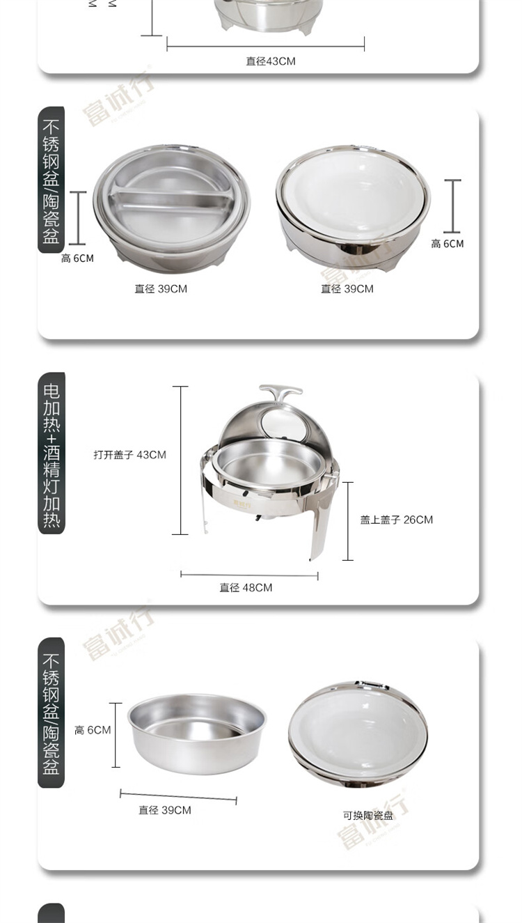 商品名称:【精选】富诚行 A5商用自助餐炉布菲炉保温炉早餐炉 玻璃可视可调温 6L 陶瓷单格双加热 高脚