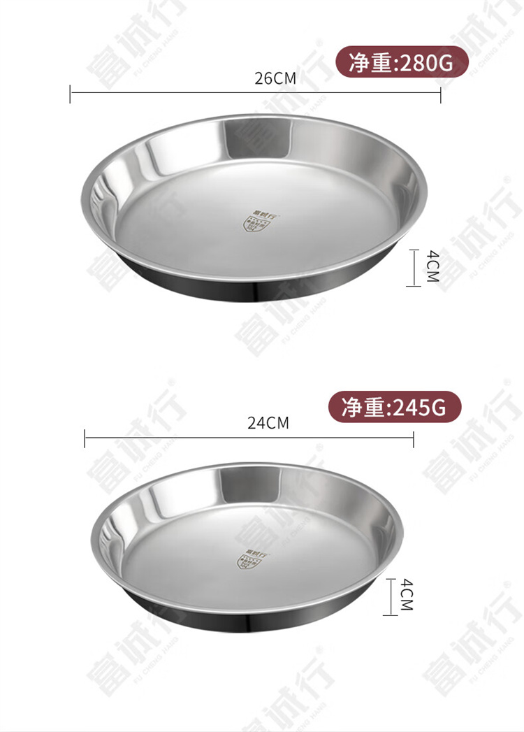 商品名称:【精选】富诚行 加厚304不锈钢圆盘 凉皮盘 糕盘 蒸年糕盘 平底盘 菜盘 24cm 无耳